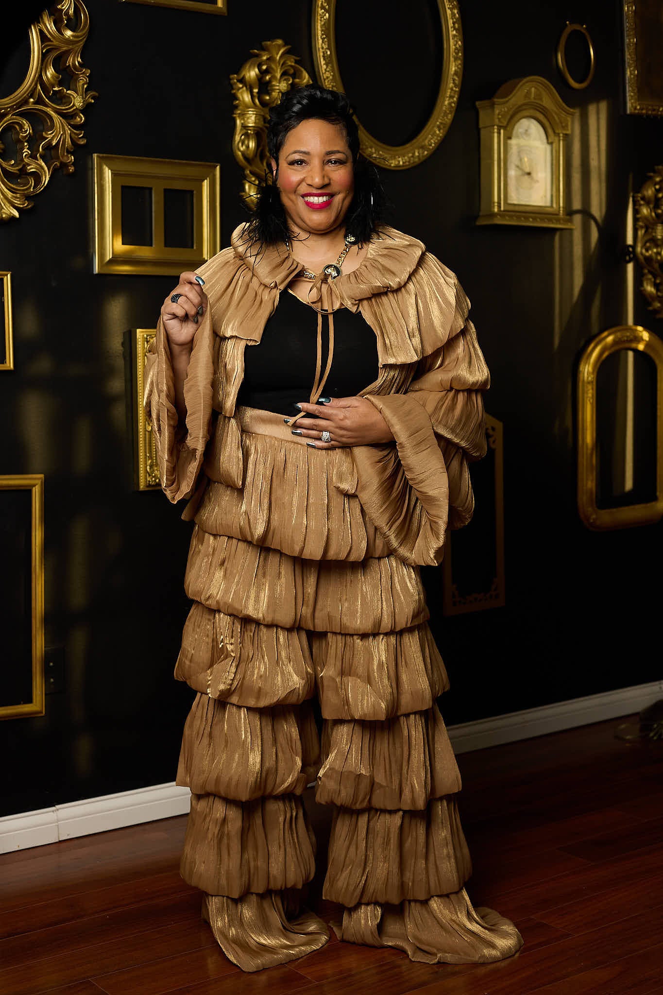 The Layers of Luxury Pants deliver balloon-tiered volume and goddess-level drama with every step — flattering, bold, and unapologetically extra.