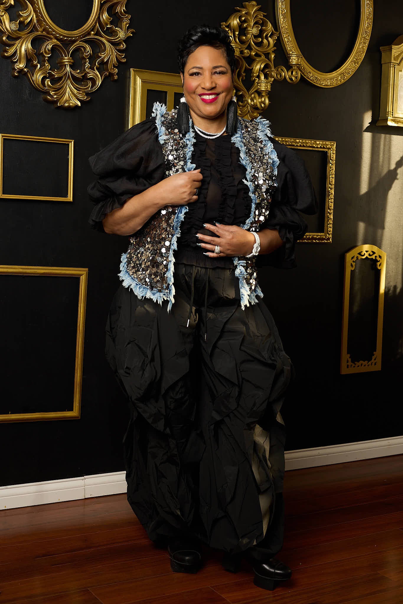 Step into your main-character era with the Stardom Status Vest—the vest that doesn’t just sparkle, it announces you. This denim-meets-sequin masterpiece is crafted for the woman who walks in like the event… not the guest.
